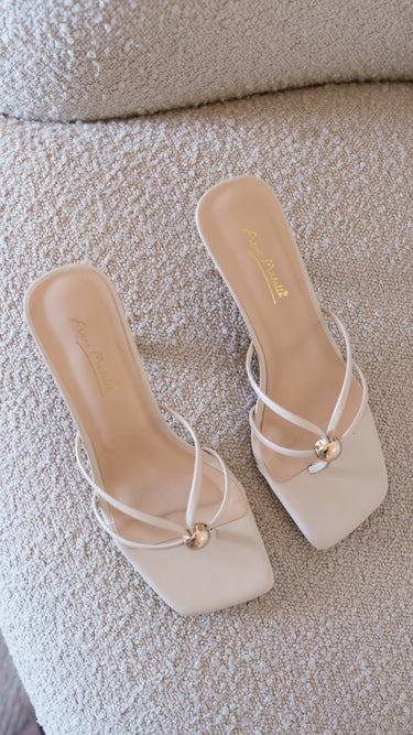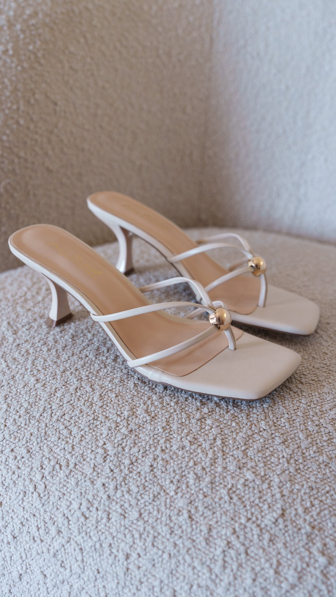 Say hello to the heel that turns simple into statement. These sleek slip-on heels mix soft curves with modern flair, featuring delicate straps and a glossy gold accent that catches the light just right. The sculpted heel adds elegance without trying too hard - perfect for dinners, parties, or when your outfit needs that extra something.
