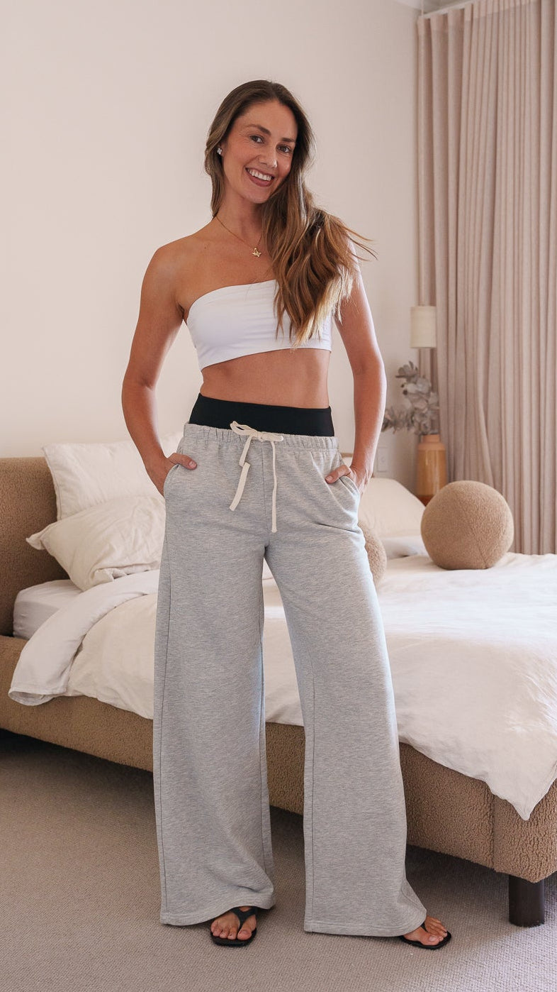 CAITLIN Wide Leg Track Pants - Grey/Black