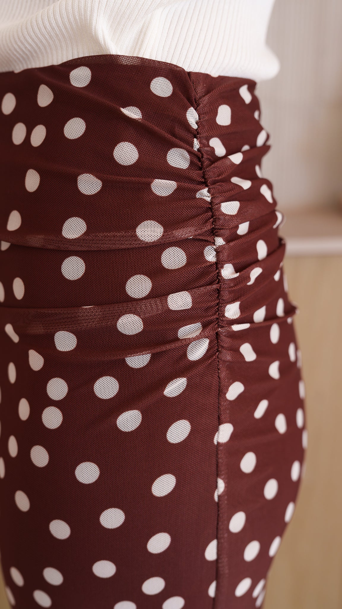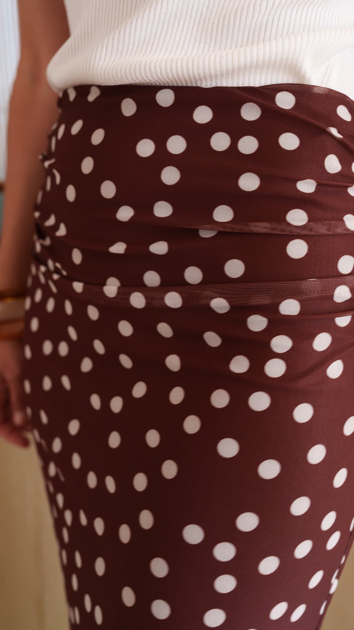 KELLEN Mesh Maxi Skirt - Chocolate Polka