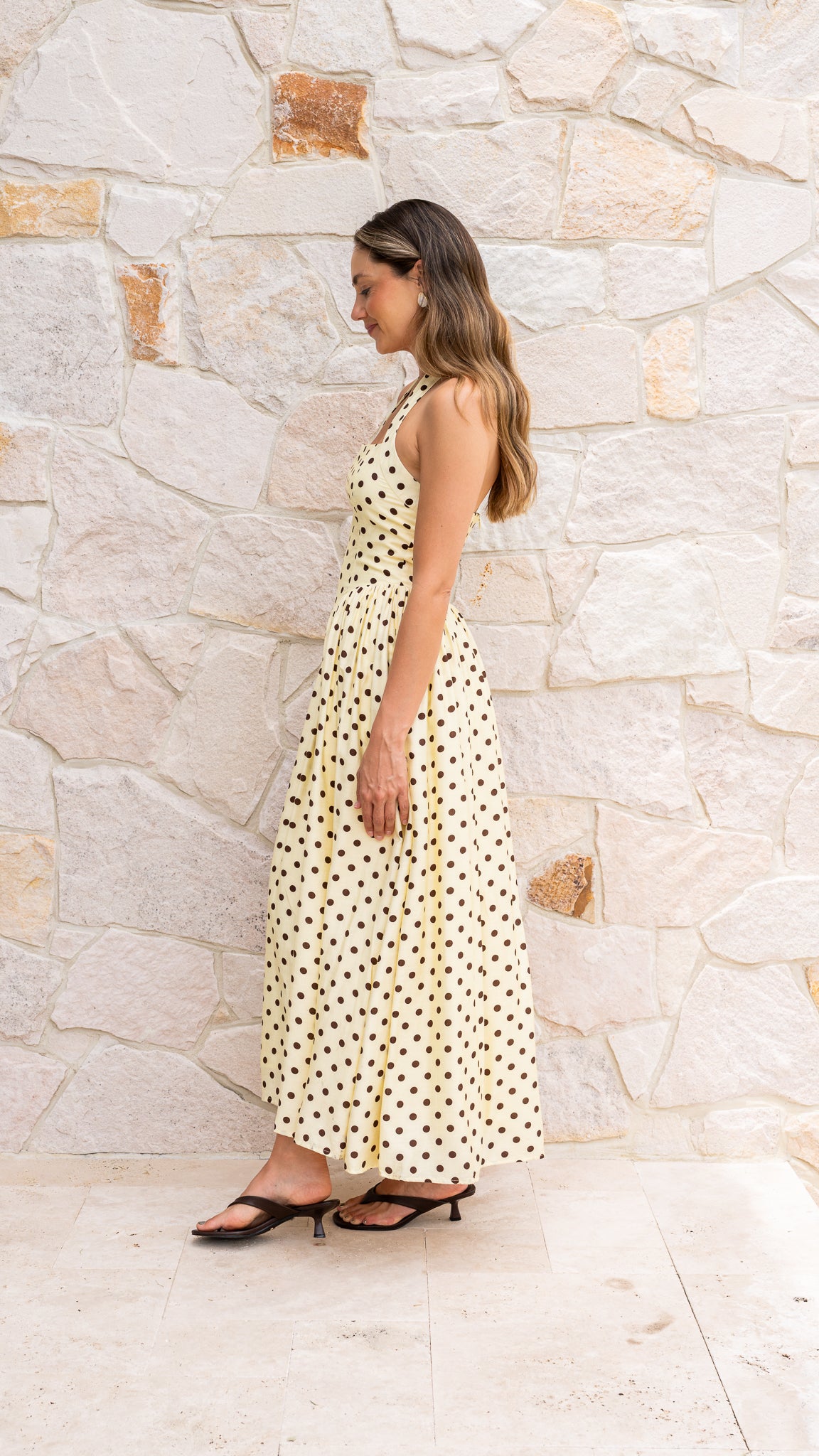 SAMMI Maxi Dress - Lemon/Choc Polka