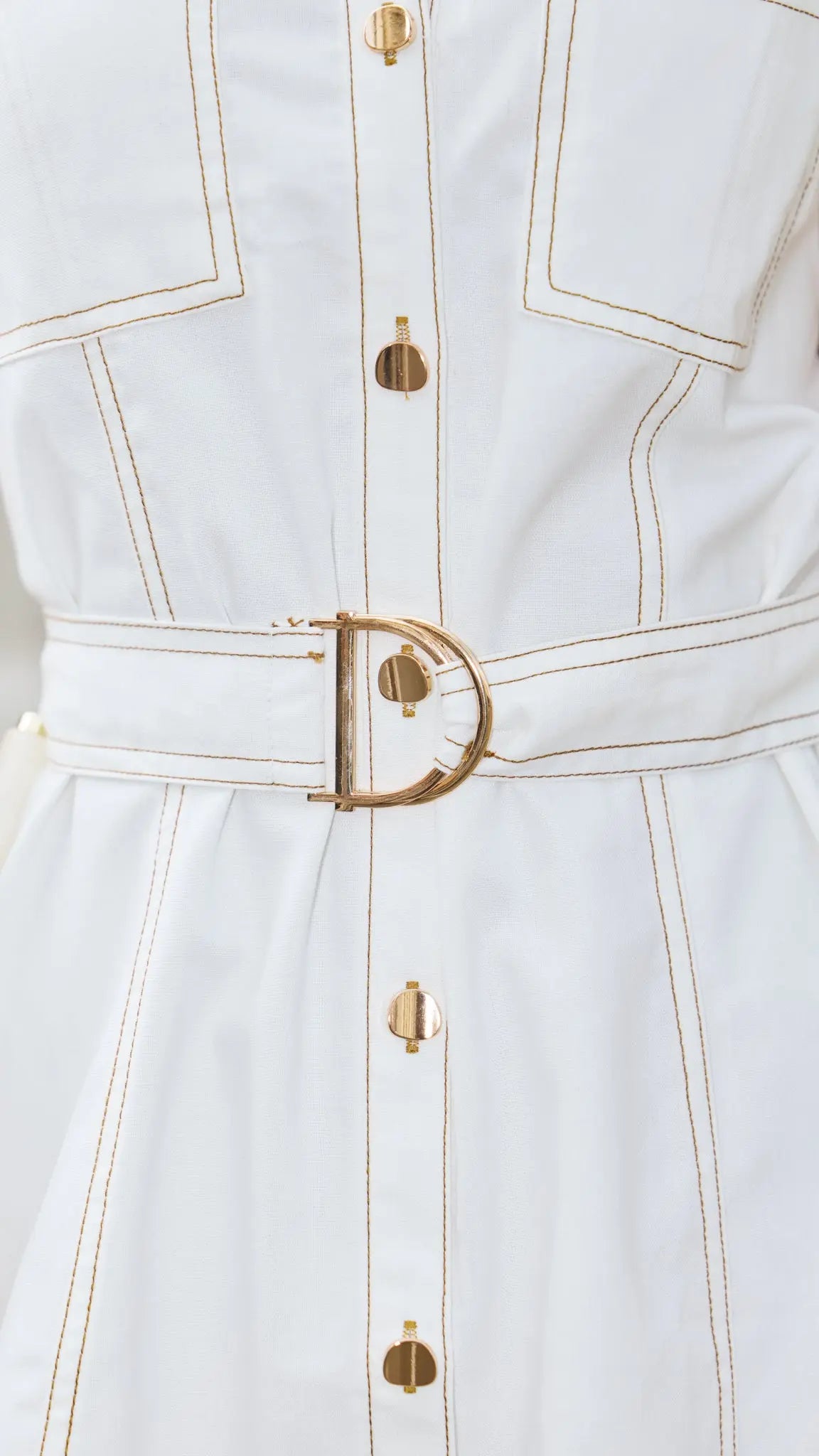 Effortlessly polished with a modern edge, the JOEY Mini Dress is your go-to for elevated everyday dressing. Designed with a tailored silhouette, it features a collared neckline, statement contrast stitching and a cinched waist with a gold buckle belt to flatter the figure. The soft neutral tone keeps it timeless, while the structured fit and utility-inspired details add a contemporary feel. Perfect for workdays, brunch dates or weekend outings. Also available in Blue.