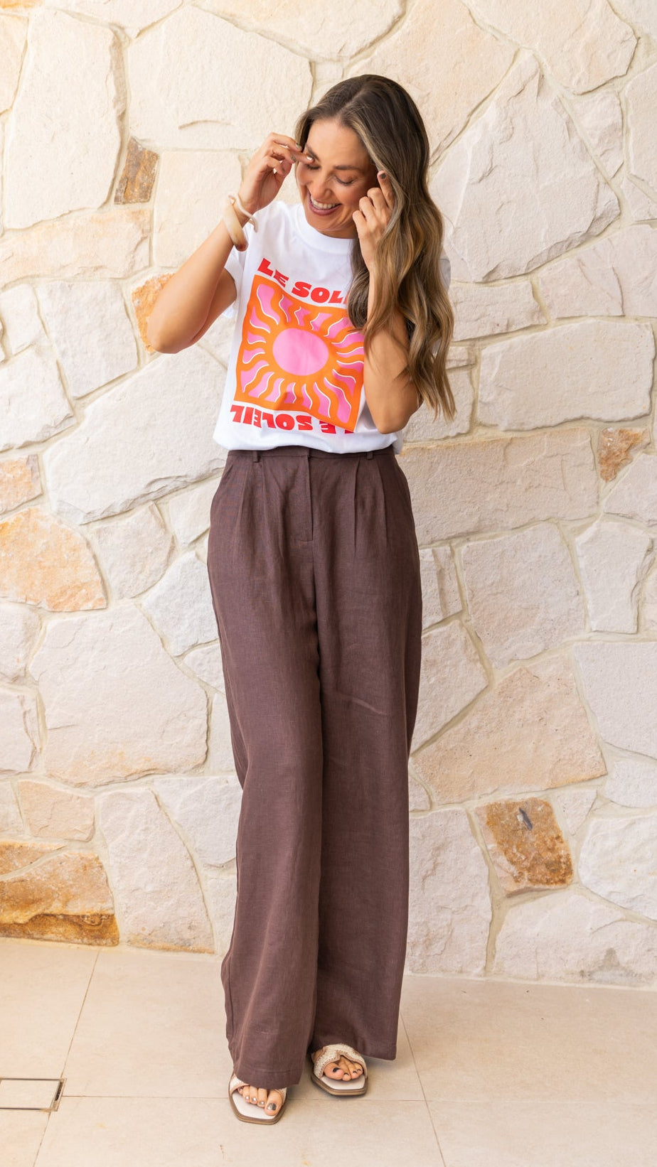 Our CORBIN Linen Pants are a wardrobe staple. Their clean lines and crisp linen fabrication mean they can be dressed up or down and perfect for summer!