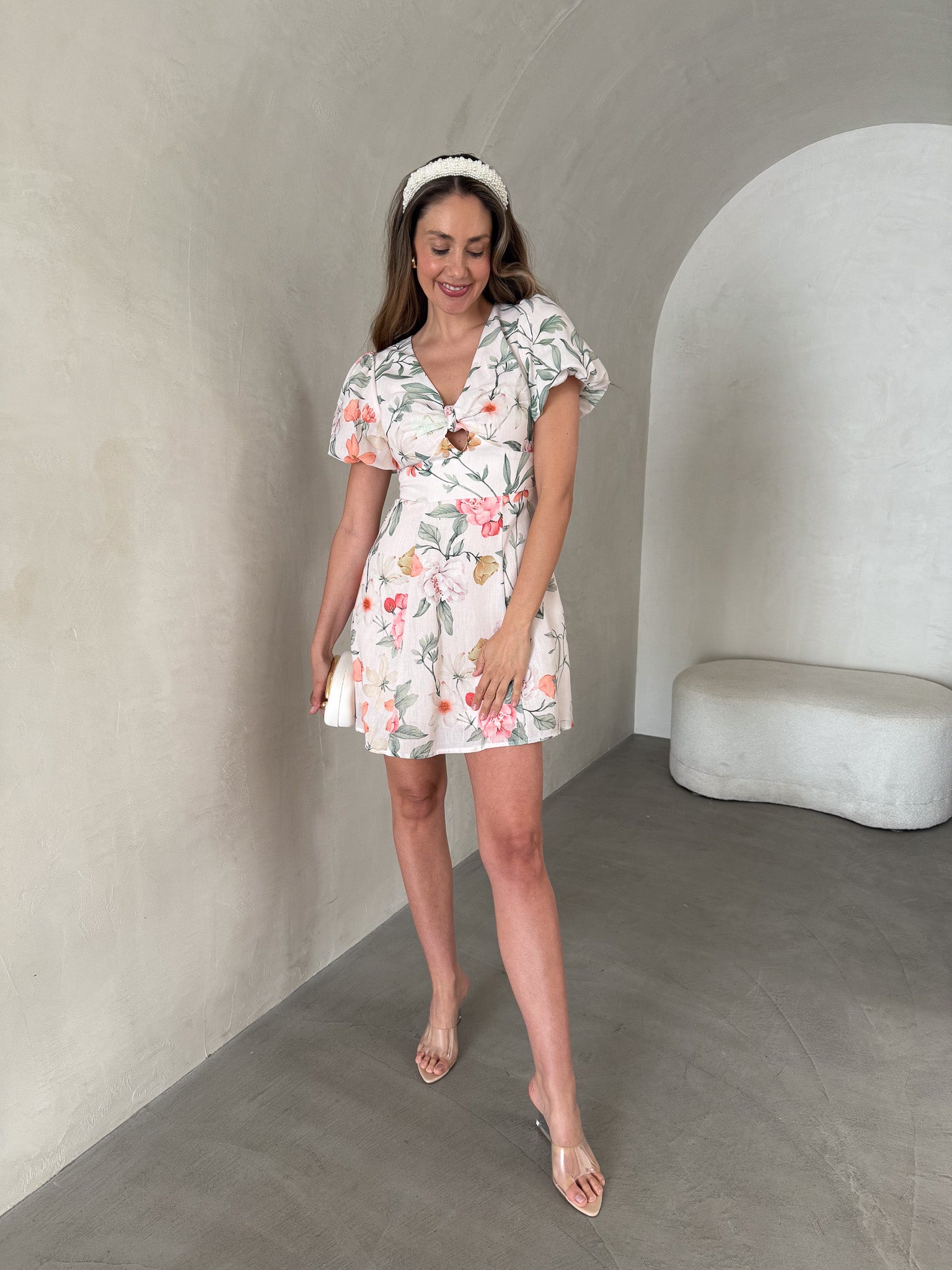 - The Mini Dress in Apricot Botanica is perfect for your next adventure! Think sipping Aperol Spritz on a boat, or drinking wine in the summer sun!