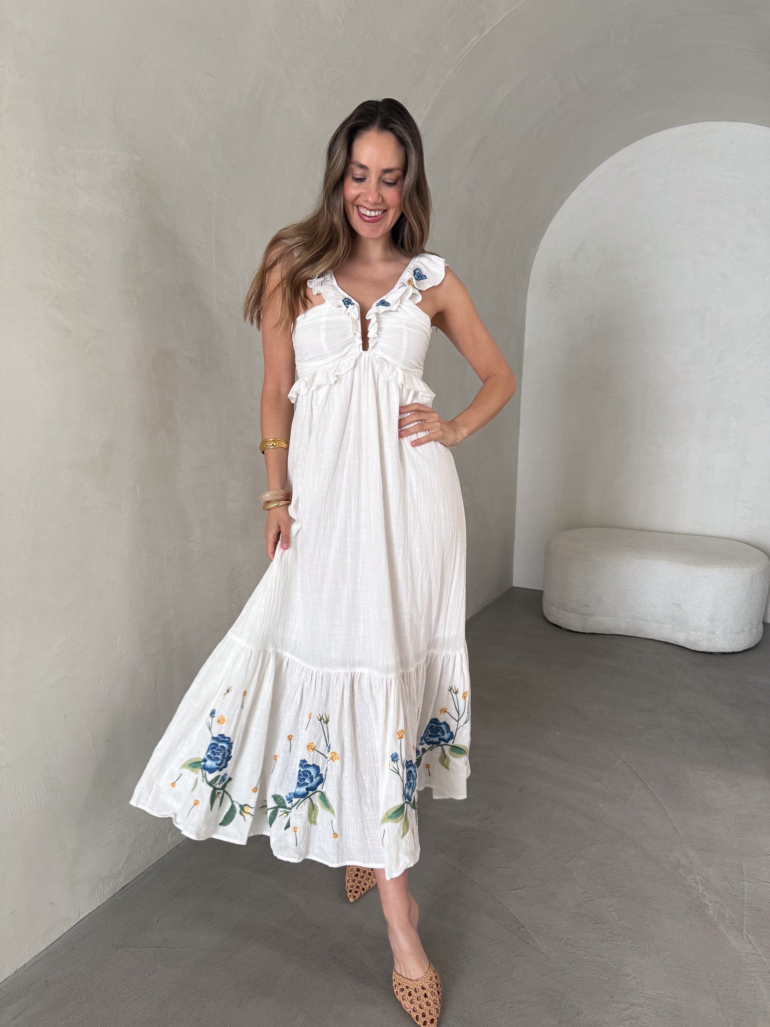 JAMES Floral Embroidered Maxi - White