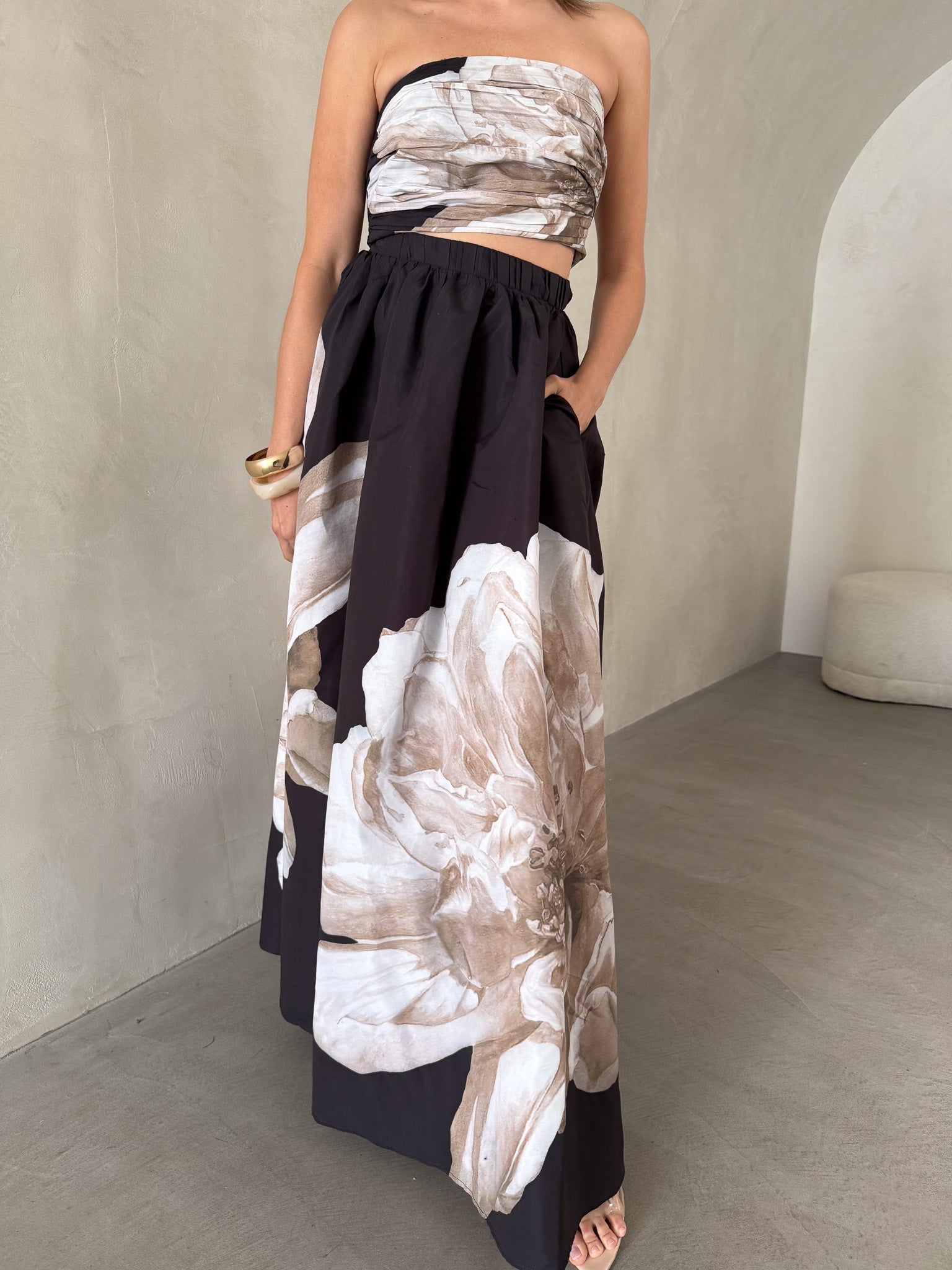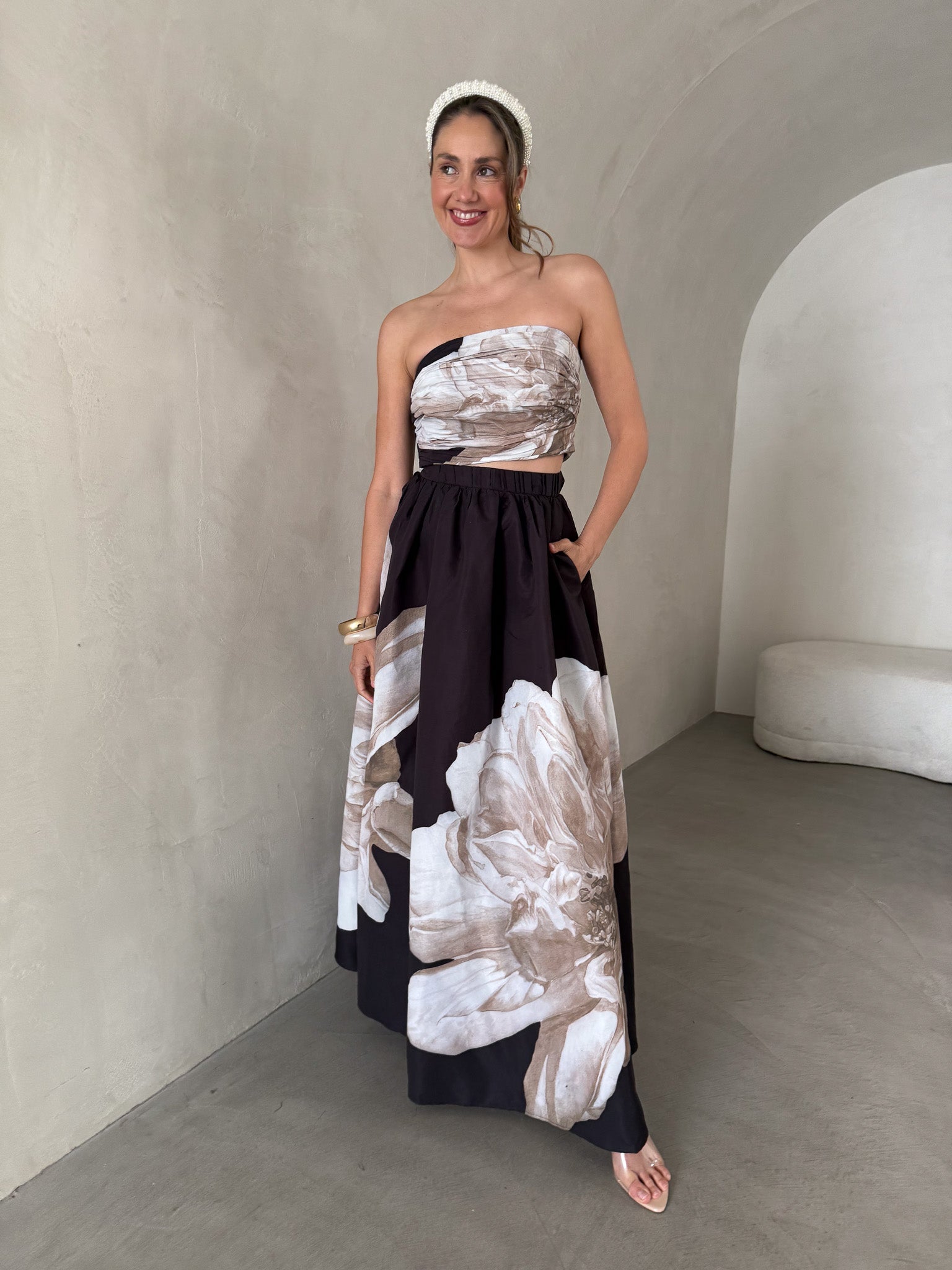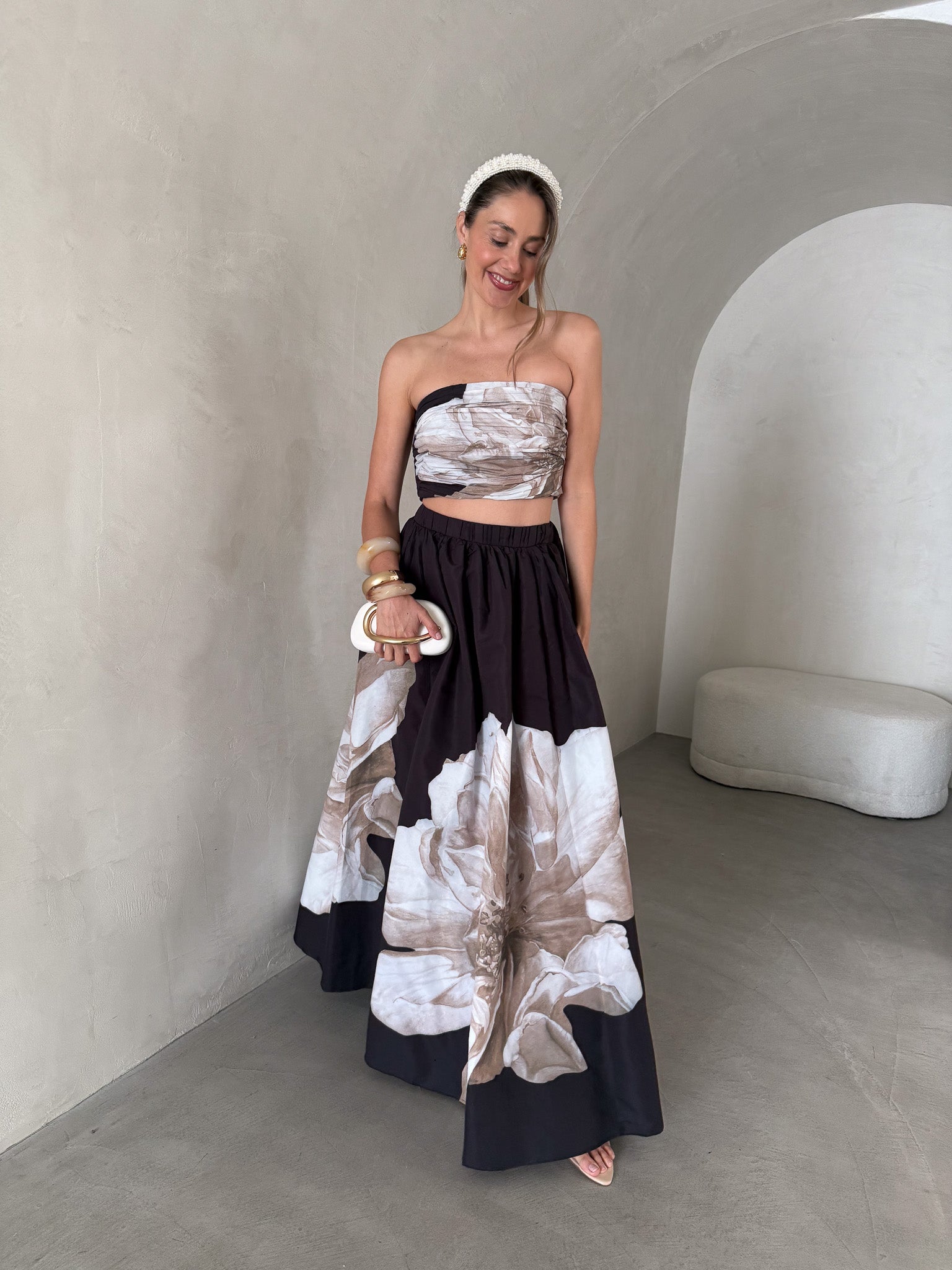 • Sold as a set, featuring a maxi length skirt and sleeveless top.