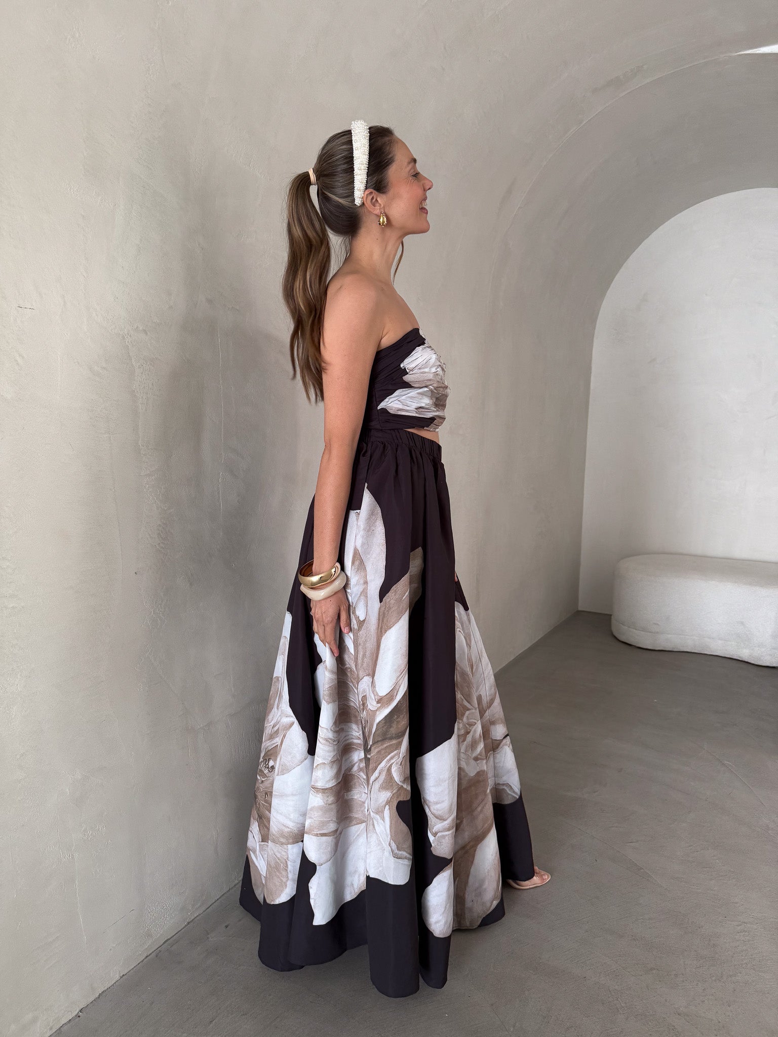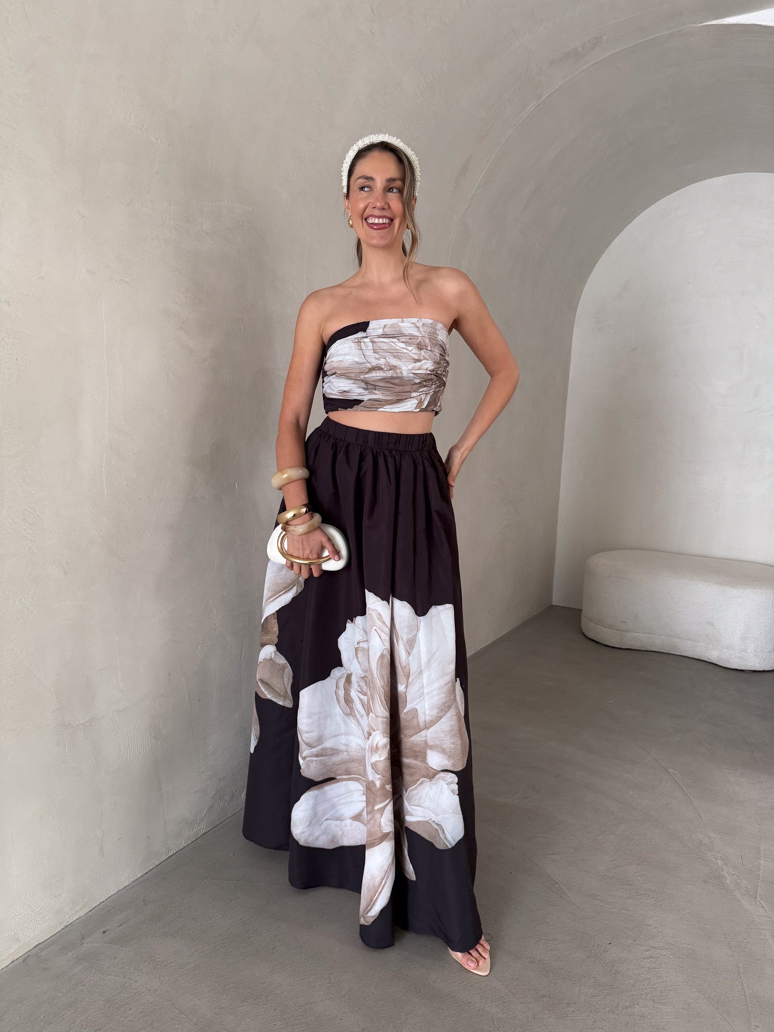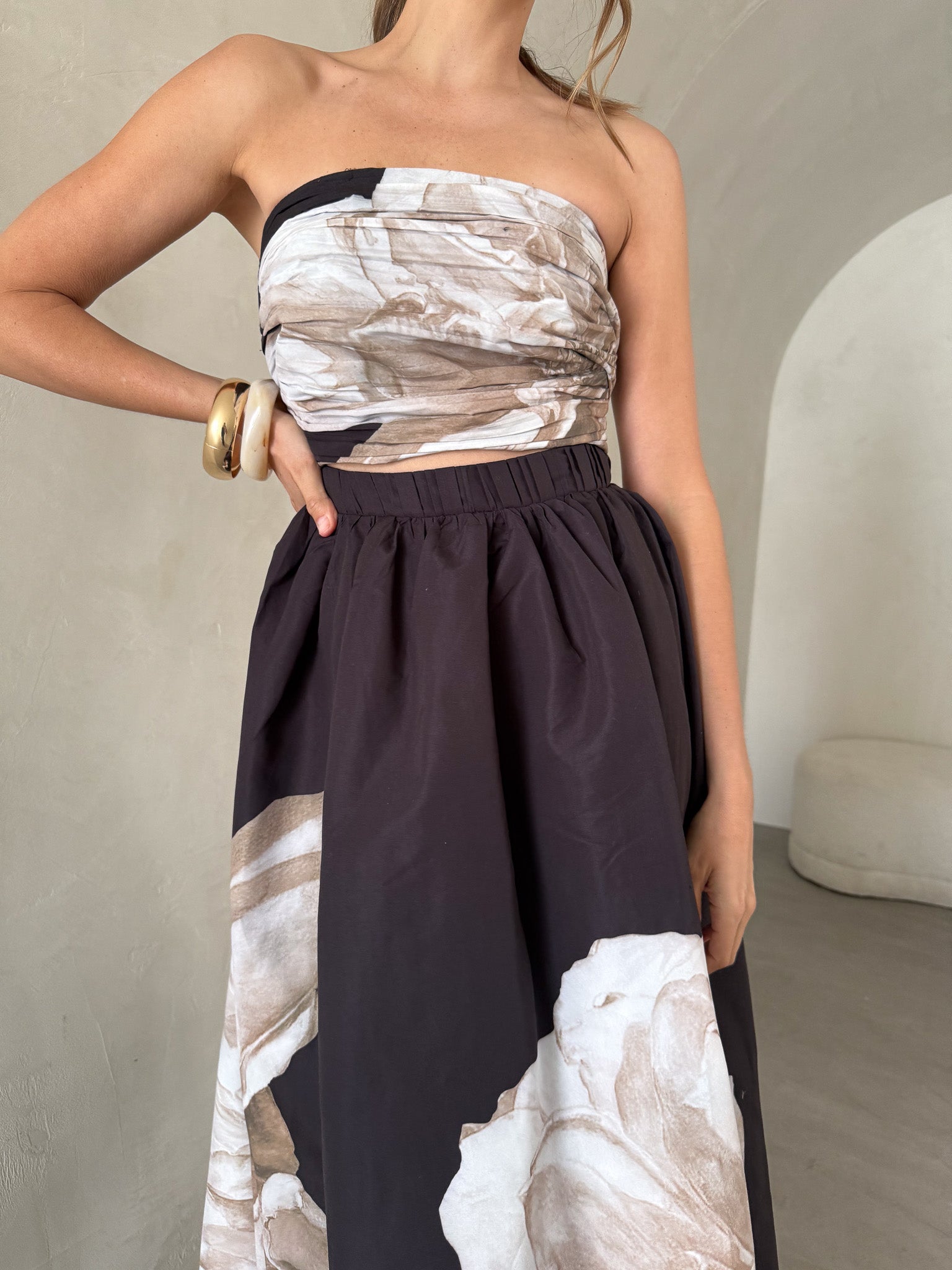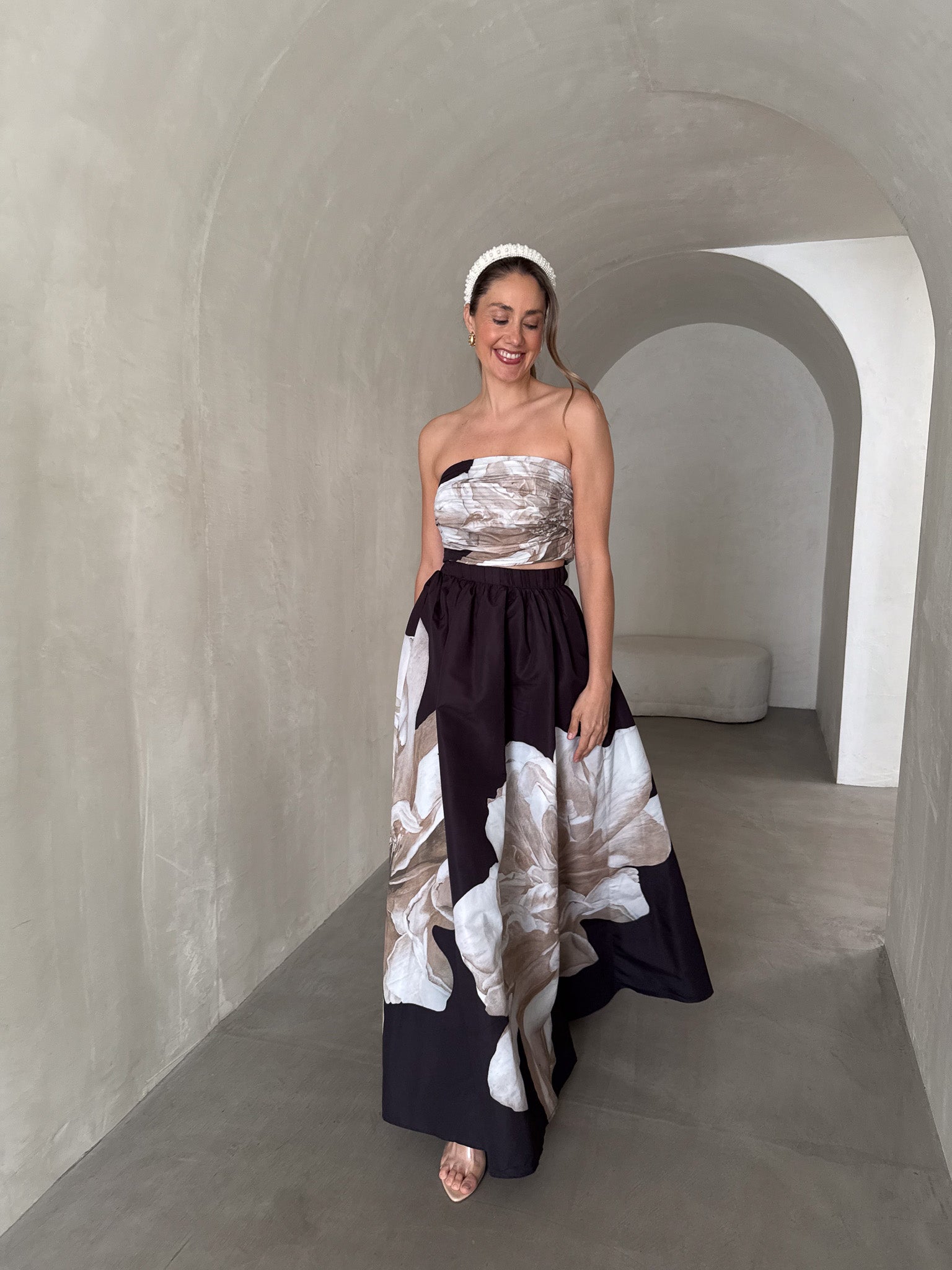 • Sold as a set, featuring a maxi length skirt and sleeveless top.