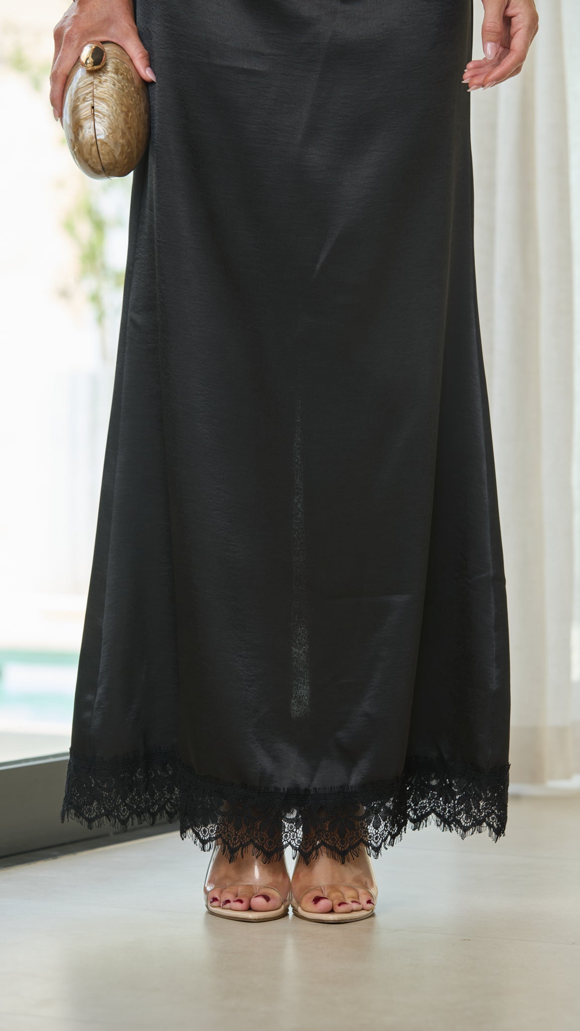 - Sleek satin maxi skirt