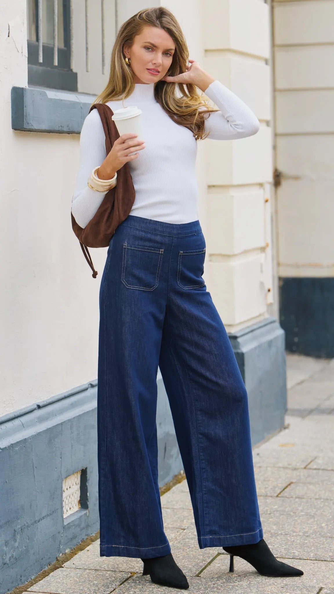 Easy, flattering and made for everyday wear, our JAYMIE Jeans are your new go-to for effortless styling. Designed with a comfortable stretch fit and a clean, streamlined silhouette, they offer the look of classic denim with all-day ease. The dark blue wash keeps things timeless, while the front pockets adds a modern, relaxed feel. Styled with the JENN Gold Buckle Top in Mocha.