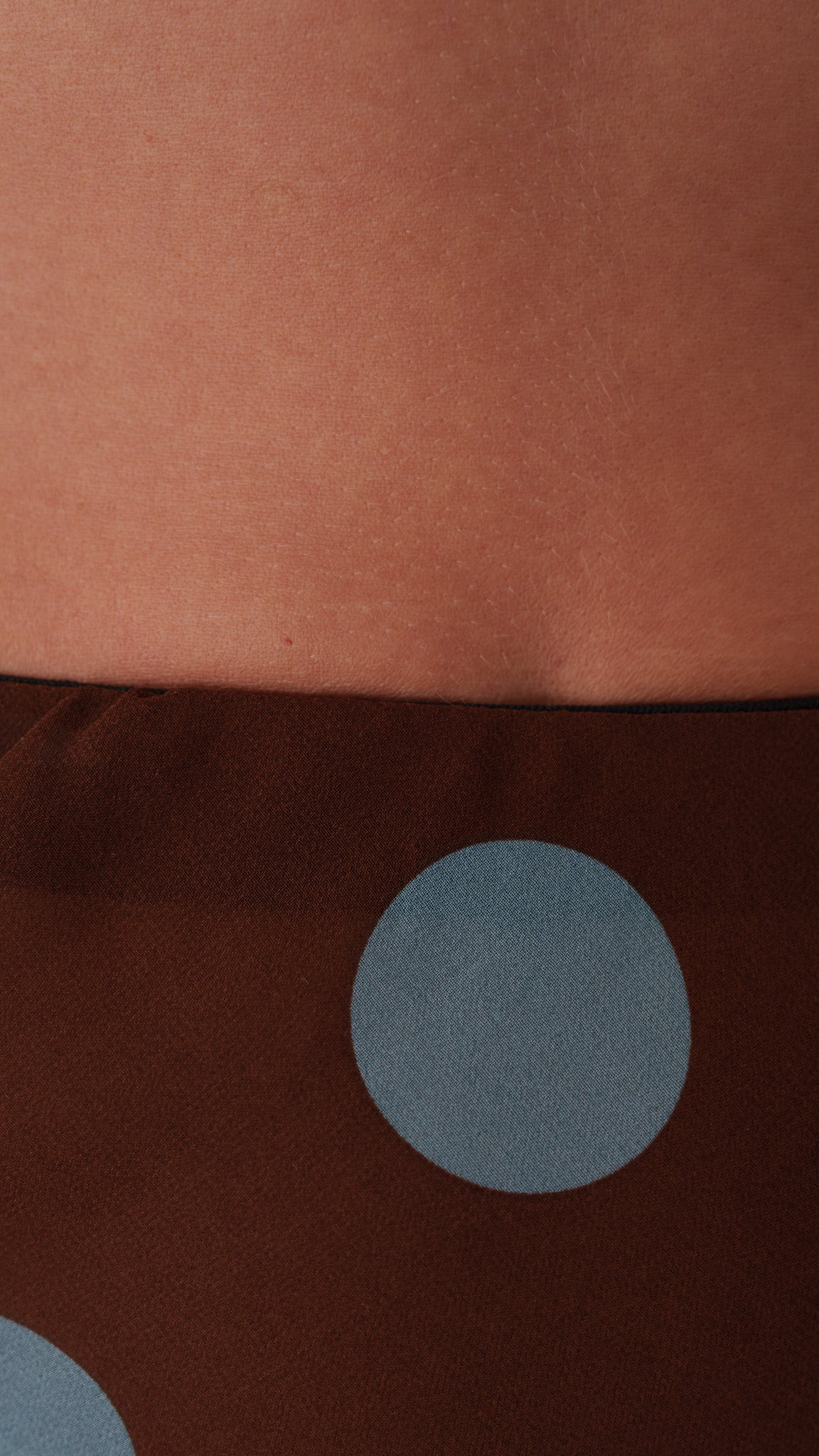 The JOY Oversized Tee and Sheer Skirt Set in White and Brown/Blue Polka blends laid back comfort with a polished feel. Featuring a relaxed, boxy crew neck tee with short sleeves, paired with a flowing sheer maxi skirt finished with an elasticated waistband, this two-piece delivers fluid movement and easy sophistication for everyday wear.