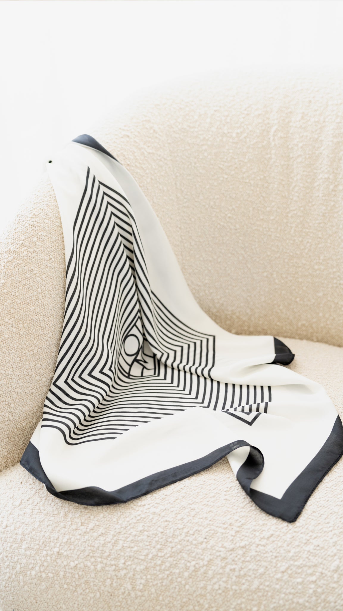 - The most coveted accessory this year is the scarf! Featuring a geometric print, this beauty can be worn as a headscarf, around your waist or tie on your favourite bag!