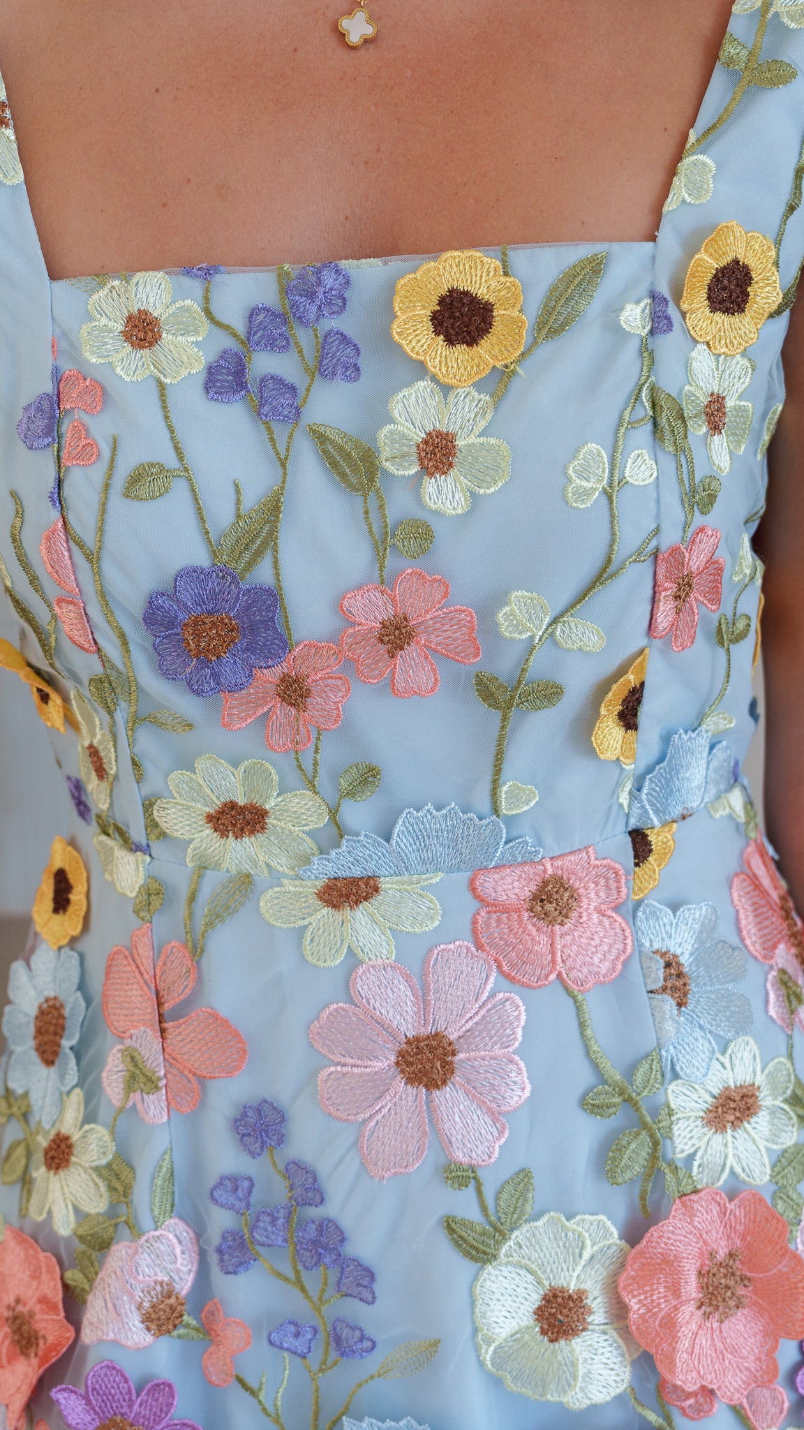 MATILDA Floral Applique Mini Dress - Blue Floral