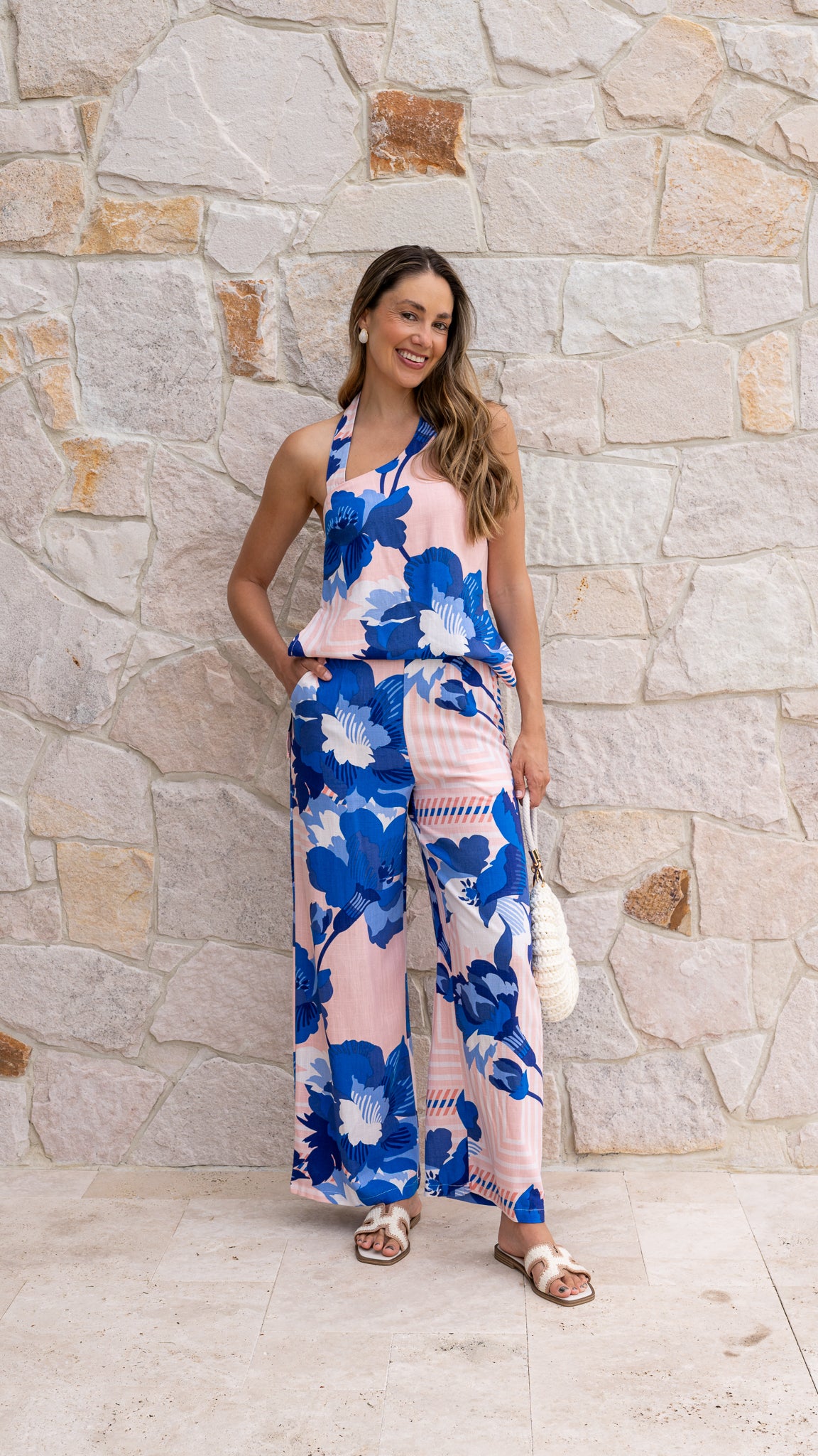 The PIPPA Halter Top in Sapphire Blossom is your stand-out summer staple. Dress it up with the matching Tailored Pants and heels for an elevated evening look, or keep it casual with a denim skirt and easy slides for sunny days. Effortless style, no matter the moment. Make your look bloom with PIPPA!