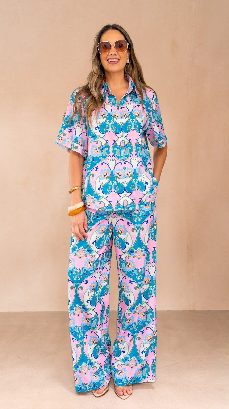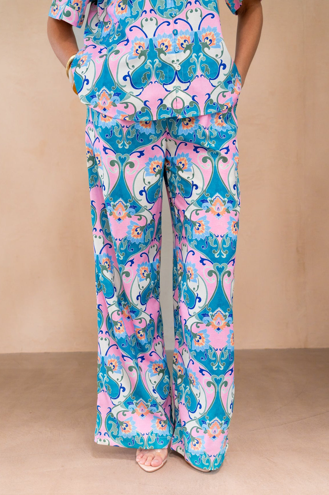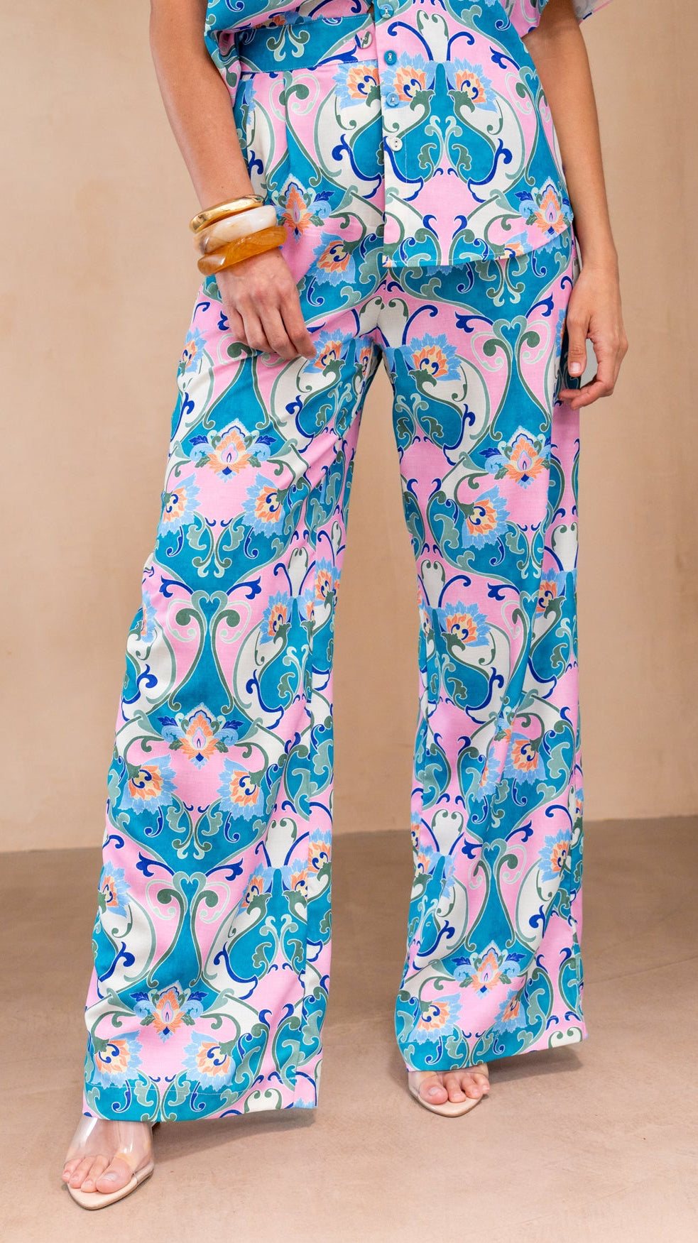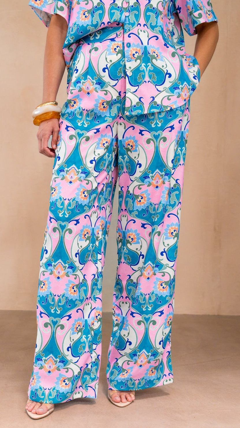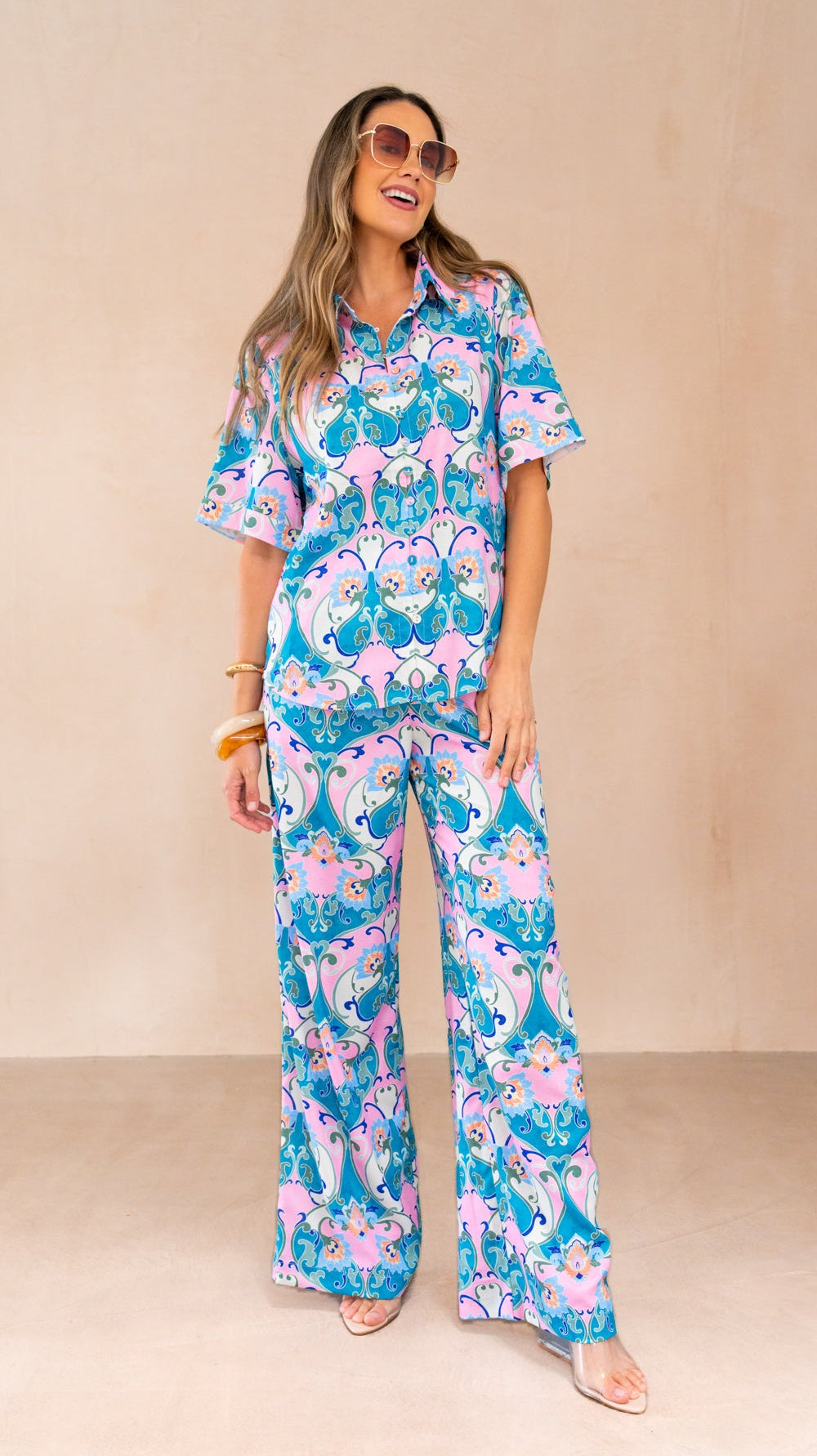 Our SIENNA Pants in our exclusive CHARM Print are a tailored pant, perfect for mixing and matching with the SIENNA Singlet or Shirt! The pop of colour makes for an event ready look!