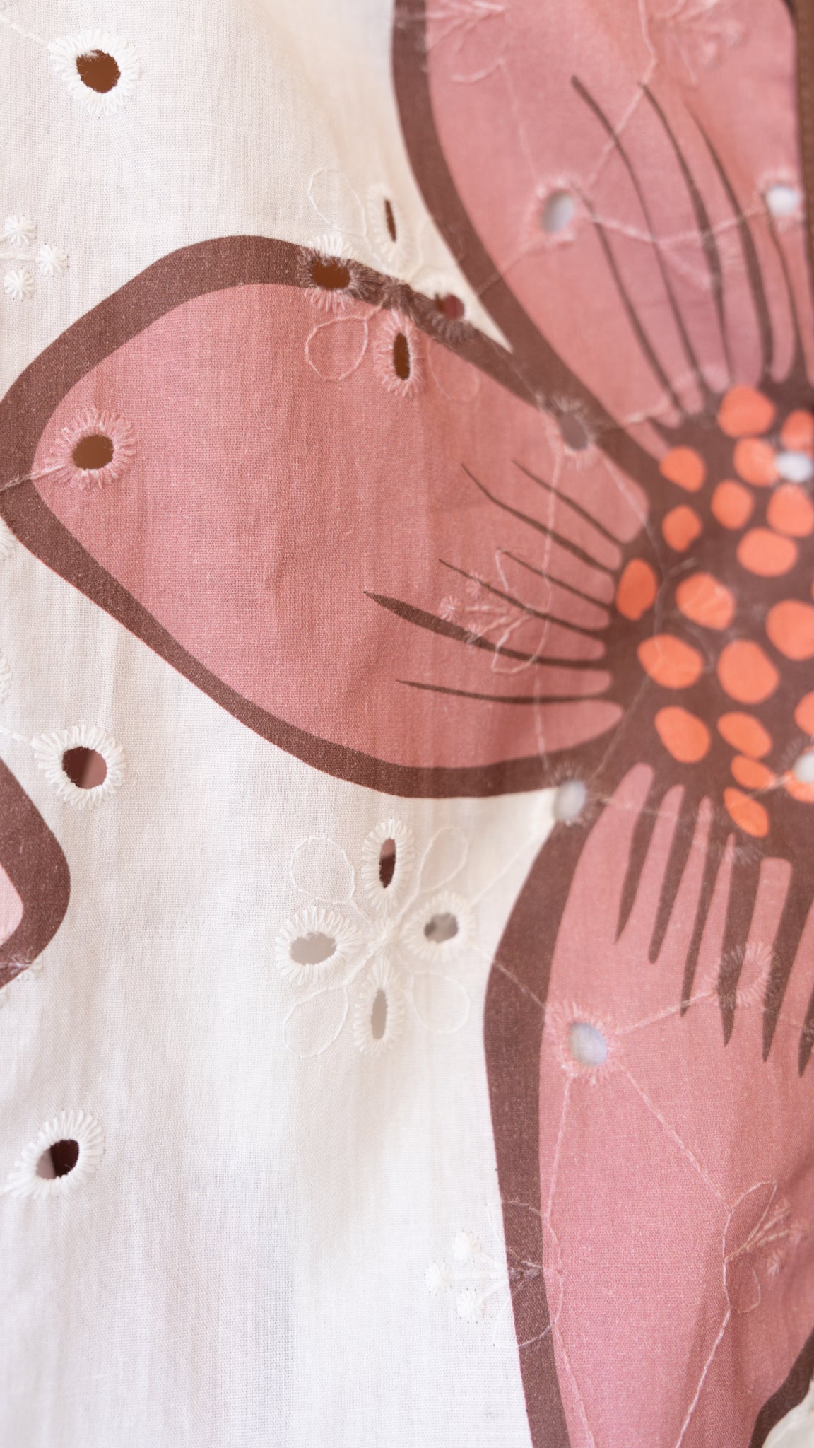 - Semi sheer, embroidered anglaise fabric.